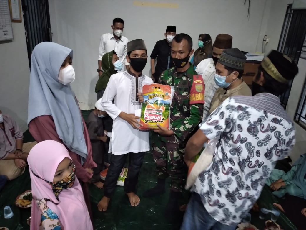 TEMBERAN — Personil Koramil 413-10/Bukit Intan Serda Joko W, Kamis 29/04/2021 sekira pukul 17.30 sampai dengan selesai, menghadiri acara pemberian santunan kepada anak yatim.