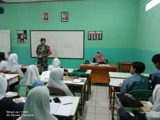Seperti yang dilakukan Babinsa Parigi Lama, Koramil 07/Pondok Aren, Kodim 0506/Tgr Serda M.M. Lubis melaksanakan kegiatan pembinaan terhadap para siswa dan siswi SMA Arif Rahman Hakim di wilayah Koramil 07/Pondok Aren, Selasa (14/02/2023).