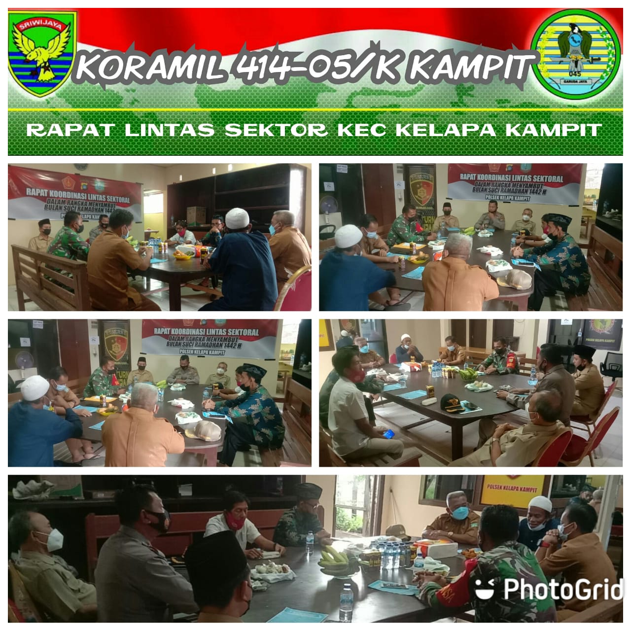 KELAPA KAMPIT — Bertempat di Mapolsek Kelapa Kampit Serda R Hutagalung, Senin 12/04/2021 mewakili Komandan Koramil 414 – 05 / Kelapa Kampit untuk menghadiri undangan rapat lintas sektoral Kecamatan Kelapa Kampit dalam rangka menyambut bulan suci Ramadhan 1442 H.