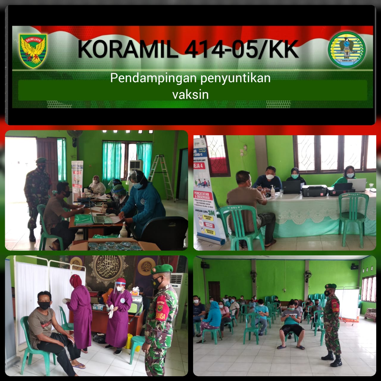 KELAPA KAMPIT — Dalam rangka pencegahan dan pemberantasan virus covid 19 ,Serda Sudiro Anggota Koramil 414 – 05 / Kelapa Kampit ,Rabu 07/04/2021, melaksanakan pendampingan terhadap warga yang melakukan penyuntikan Vaksin covid 19 ( vaksin Sinovac ) Dosis ke 2 bertempat di Gedung serbaguna Kecamatan Kelapa Kampit Kabupaten Belitung Timur.