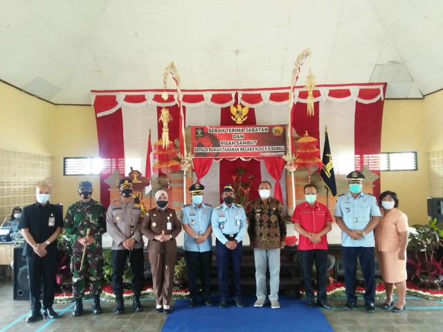 Acara serah terima dan pisah sambut Kepala Rutan Negara Klas IIB Bangli selesai diakhiri dengan pemberian ucapan selamat oleh para undangan dan sesi foto bersama dengan tetap menjaga protokol kesehatan. (Ed27)