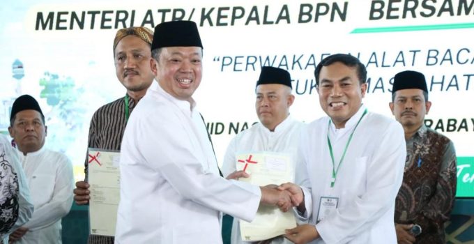 Nusron Wahid, dalam kegiatan penyerahan sertipikat tanah wakaf dan rumah ibadah di Masjid Nasional Al-Akbar Surabaya