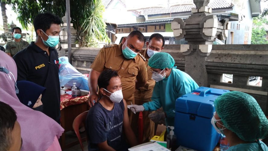 Persindonesia.com. Jembrana – Minimnya kesadaran warga untuk mengikuti vaksinasi di Desa Pengambengan menjadi perhatian Bupati Jembrana I Nemgah Tamba. Hal ini terkait masih rendahnya capaian vaksinasi didesa tersebut yang baru terealisasi 54,53 persen saja.Setelah sebelumnya, Minggu(1/8) memberikan sosialisasi kepada para pemilik perahu yang ada di desa Pengambengan, kali ini orang nomor satu di Bumi Mekepung itu melaksanakan sidak pelayanan vaksinasi di Kantor Desa Pengambengan, Senin (2/8/2021).