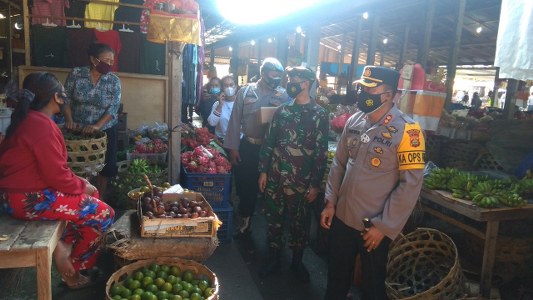 Persindonesia.com Gianyar- Pengetatan penerapan prokes terus digencarkan di wilayah Kabupaten Gianyar. Seperti sidak masker yang digelar pihak kepolisian dan TNI bersama jajaran Pemkab Gianyar di Pasar Samplangan, Minggu (7/2/2021). Dipimpin Dandim 1616/Gianyar Letkol Inf Frandi Siboro, Kapolres Gianyar AKBP I Dewa Made Adnyana, dan Asisten III Setda Kab Gianyar Ngakan Darma Jati.