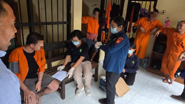 PersIndonesia.Com, Klungkung- Seksi Kedokteran dan Kesehatan (Sie Dokkes) Polres Klungkung memberikan pelayanan kesehatan kepada salah satu tahanan yang mengalami gangguan kesehatan di ruang tahanan Polres Klungkung.