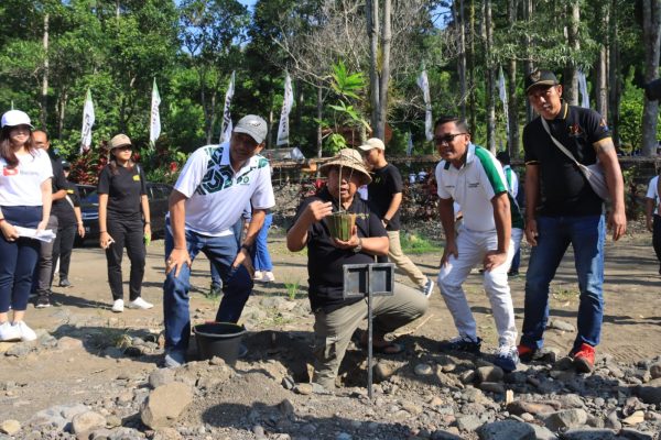 Sebanyak 250 bibit bambu petung ditanam Bupati Jembrana I Nengah Tamba bersama jajaran Bank BPD Bali di kawasan Manistutu Camping Ground (Mantu Cager), desa Manistutu, kecamatan Melaya, kamis (18/5). Selain bambu petung, juga ditanam 250 bibit manggis bantuan CSR Bank BPD Bali.