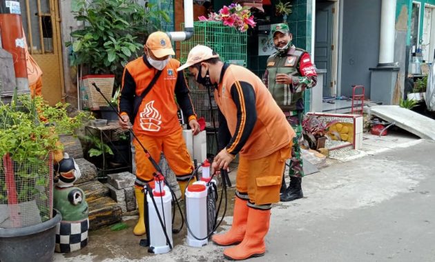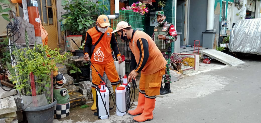 Kodim 0505/JT- Personel koramil 02/Matraman Koptu Erwin, Bhabinkamtibmas, Muspika dan perangkat RT/RW melaksanakan kegiatan penyemprotan disinfektan dilingkungan RW.06 Utan kayu Selatan , Kecamatan Matraman guna mencegah penyebaran covid 19, Rabu (17/3/21).