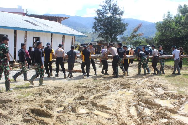 Persindonesia.com Lanny Jaya – Personel Pos Kotis Satgas Yonif Mekanis 203/AK dan anggota Koramil Tiom serta Polres Lanny Jaya melaksanakan karya bhakti bersama dengan para jemaat Gereja GKI Betel Tiom dan juga masyarakat pendatang di Gereja GKI Betel Tiom, Distrik Tiom, Kab. Lanny Jaya, Papua, Minggu (12/03/2023).