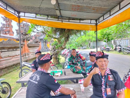Persindonesia.com Jembrana – Babinsa Desa Mendoyo Dangin Tukad Koramil 02/Mendoyo Kodim 1617/Jembrana, Sertu I Pt Gd Wiantara dan Polprades I Putu Yasa serta pecalang bersinergi mengamankan aktivitas warga.