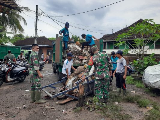 Kodim 1617/Jembrana turut ambil bagian dalam karya bakti pembersihan puing puing material sisa banjir yang melanda wilayah Kabupaten Jembrana. Tampak personel TNI Polri bersama intansi terkait dan masyarakat melakukan pembersihan sampah mulai dari areal Pasar Melaya hingga pengangkutan sampah yang menumpuk di aliran sungai yang tepat berada disebelah barat Pasar Melaya, Rabu (19/10/2022)