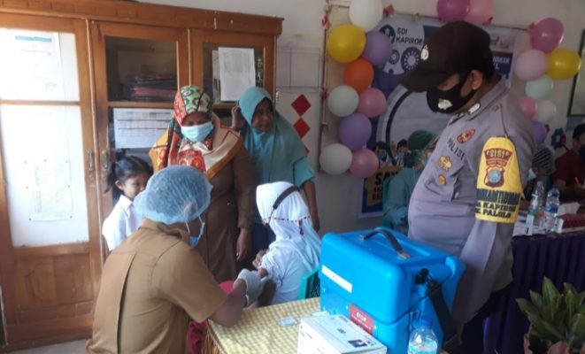 Sigi, PersIndonesia.com – Polsek Palolo, Dalam rangka mendukung program dari Pemerintah sebagai upaya terus mencegah penyebaran Covid-19, Bhabinkamtibmas Polsek Palolo Polres Sigi, Bripka Moh. Ikbal bersama Babinsa Koramil Palolo Serka Junaid melaksanakan pemantauan sekaligus pengamanan jalannya kegiatan Vaksinasi bagi anak usia 6-11 tahun yang bertempat di SD Inpres Kapiroe Desa Kapiroe Kecamatan Palolo Kabupaten Sigi, Selasa(08/02/2022).