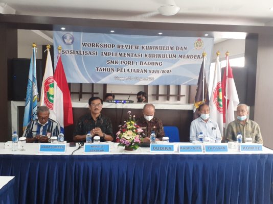 Badung 24 Juni 2022 – SMK PGRI 1 Badung melaksanakan workshop review kurikulum dan sosialisasi implementasi kidikulum Merdeka Tahun Pelajaran 2022/2023, dilaksanakan selama dua hari mulai tgl 24 hingga 25 Juni 2022 di Lobi Hotel Skarisba(SMK PGRI 1 Badung).