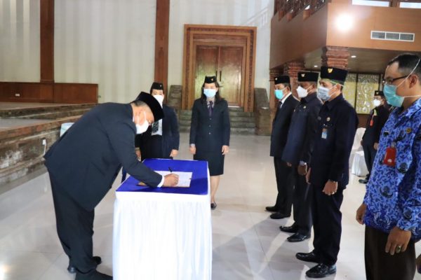 Pengambilan sumpah jabatan itu berdasarkan Peraturan Menteri Pendayagunaan Aparatur dan Reformasi Birokrasi nomor 25 tahun 2021 serta Peraturan bupati tentang tata kerja Badan Daerah, kesekretariatan serta Perbup tentang Tata Kerja Dinas Daerah. (sb/ed27)