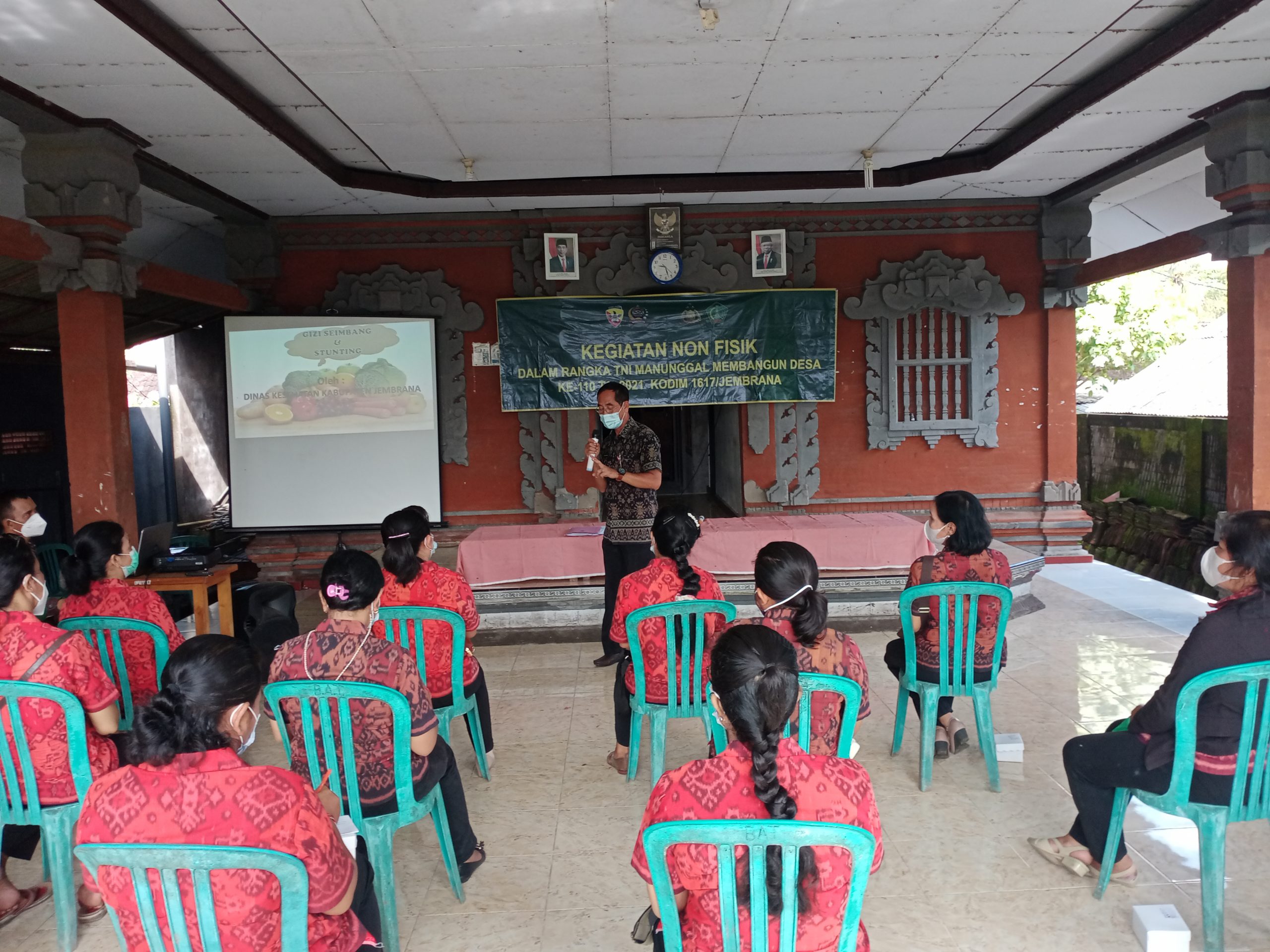 Persindonesia.com Jembrana – Demi tercapainya sasaran non fisik dalam TMMD Kodim 1617 Jembrana, Upaya-upaya nyata dilakukan Tim melalui pemberian sosialisasi dan penyuluhan kepada warga terus berlanjut. Bekerja sama dengan Dinas Kesehatan Kabupaten Jembrana, Kodim 1617 Jembrana kali ini memberikan penyuluhan terkait Posyandu, Stunting pertumbuhan anak dan Pos Bindu PTM kepada Ibu Ibu PKK dan Kader Posyandu Desa Batu Agung, Selasa (09/03/2021)