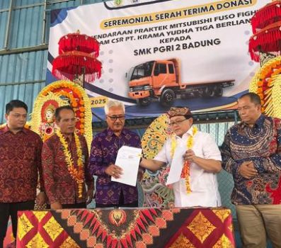 Badung, persindonesia.com – Dukungan terhadap pendidikan vokasi kembali ditunjukkan oleh PT. Krama Yudha Tiga Berlian Motors (KTB) melalui program Corporate Social Responsibility (CSR). Kali ini, perusahaan tersebut menyerahkan satu unit kendaraan praktik Mitsubishi Fuso Fighter kepada SMK PGRI 2 Badung sebagai bentuk komitmen dalam membantu pengembangan kompetensi siswa di bidang otomotif.