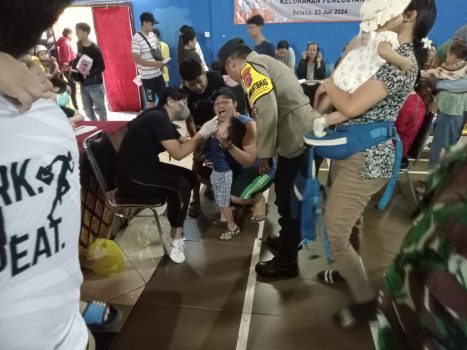 Denpasar – Guna memastikan pelaksanaan Pekan Imunisasi Nasional (PIN) Polio serentak berjalan lancar, Kepolisian Sektor Denpasar Barat (Polsek Denbar) Polresta Denpasar melalui Bhabinkamtibmas di masing-masing Desa dan Kelurahan melakukan monitoring dan pengamanan bagi tim kesehatan dari Nakes dari UPTD Puskesmas 1 Denbar bersama Kader Posyandu, Minggu (28/7/2024) pagi.