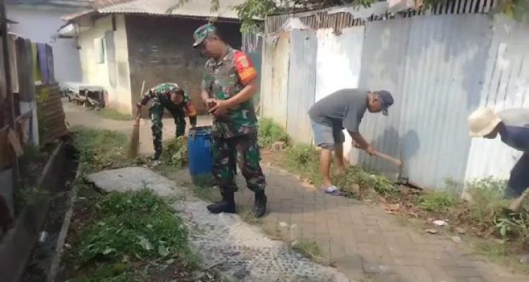 Babinsa Koramil 01/Tgr Bersihkan Lingkungan