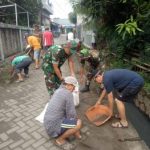 Persiapan Penghujan, Babinsa Koramil 01/Tgr Bersihkan Lingkungan