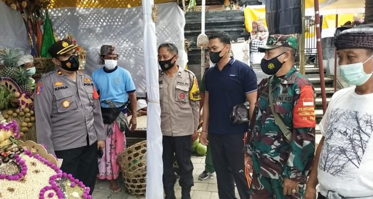 Bersama Unsur Muspika, Danramil 1617-02 Mendoyo Pantau Langsung Penerapan Protkes Saat Upacara Ngenteg Linggih Di Desa Yehembang