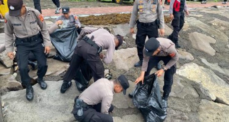 Dukung Kelestarian Alam, Polres Jembrana Bersih-bersih di Pantai Perancak