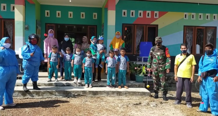 Cegah Penyebaran Covid-19 , Babinsa Manistutu Lakukan Penyemprotan Desinfektan