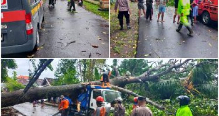 BRAK! Truk Pengangkut Material Tertimpa Pohon Wani di Desa Tegak Klungkung
