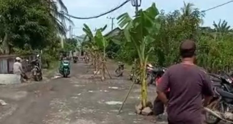 Ya Gusti! 3 Tahun jalan Pesanggaran Rusak Pemkab Banyuwangi Seperti Tutup Mata, Warga Tanam Pohon Pisang