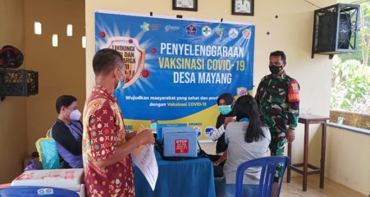 Dukung Percepatan Vaksinasi Covid-19,Babinsa Koramil 414-05/Kelapa Kampit Dampingi Vaksinasi di Desa Binaan