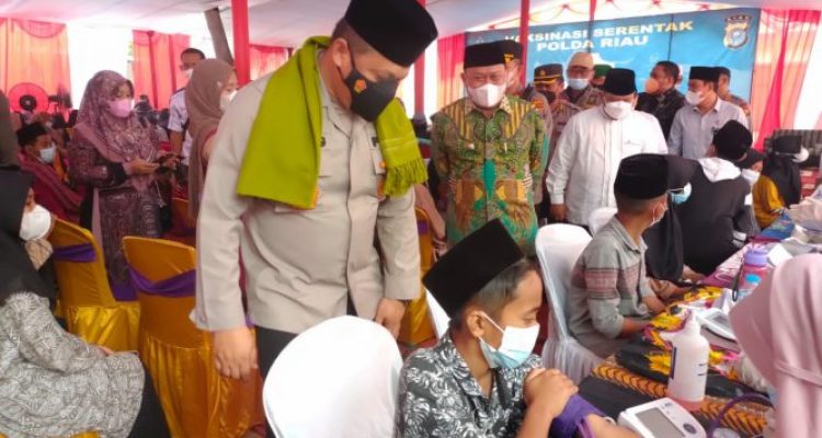 Peringati Hari Santri Nasional ke-4 di Ponpes Hidayatul Salafiyah, Polda Riau Gelar Vaksinasi Serentak