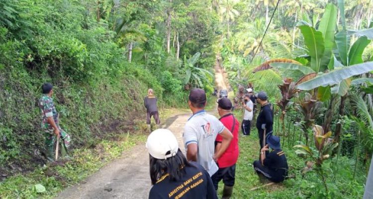 Jembatan Utama Hanyut Di Terjang Banjir, Babinsa Bersama Aparatur Desa Yehembang Kauh Bersihkan Jalan Alternatif