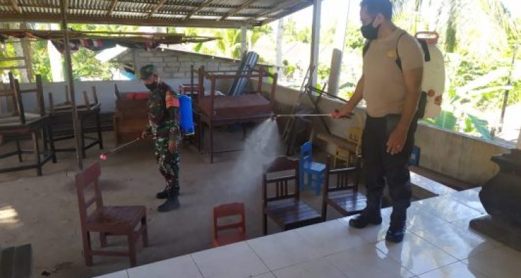 Jumat Bersih, Babinsa Manggissari Goyong Royong Pembersihan Sampah Dan Penyemprotan Disinfektan