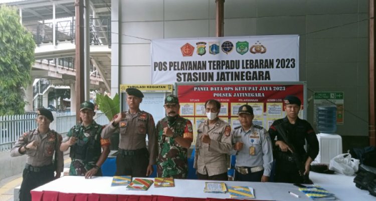 Pengamanan Arus Mudik H -3 Lebaran, Babinsa Koramil 01/Jatinegara Bersama Tiga Pilar Amankan Stasiun