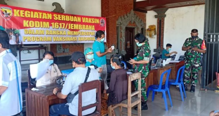Kodim 1617/ Jembrana Gelar Serbuan Vaksinasi Bersama Dinas Kesehatan, Guna Dukung Percepatan Vaksinasi