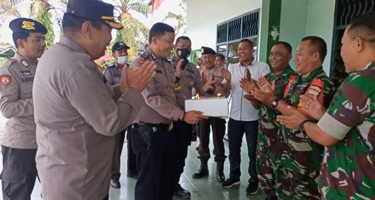 HUT TNI ke 77, Polsek Tapung Beri Kue Ulta Kepada Koramil 16 Tapung