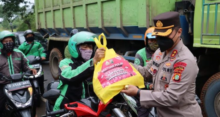 Lewat “Polri Peduli” Polres Tangerang Selatan Bagikan Paket Sembako Kepada Masyarakat Terdampak Penyesuaian Harga BBM