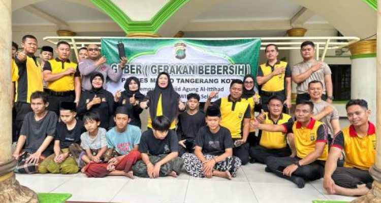 Libatkan Personel Gabungan, Polres Metro Tangerang Gerakan Bersih Masjid dan Musholla Jelang Ramadhan