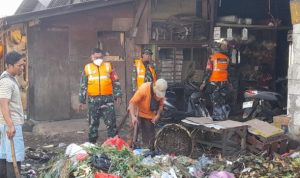 Satgas Kodim 0506/Tangerang Berjibaku Bersihkan Sampah Berbau dan Berbelatung di Pasar Cimanggis