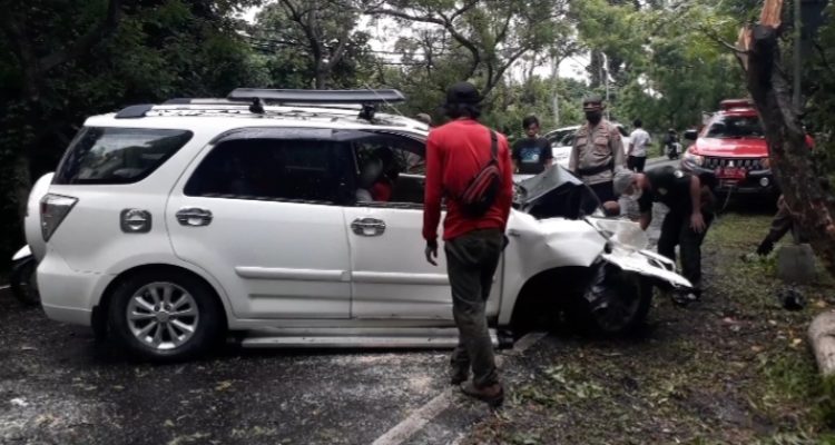 Diduga Mengantuk, Mau Pulkam ke Bondowoso, Sopir Sruduk Pohon Perindang di Cekik