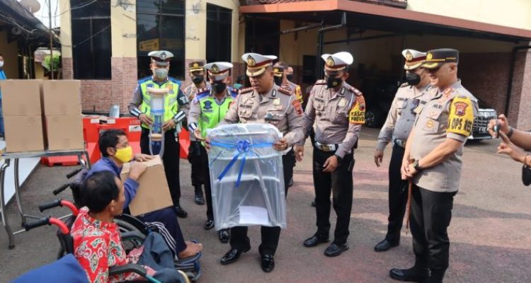 Peringati HUT Bhayangkara ke 76, Polres Tegal Bagikan Sembako dan Helm