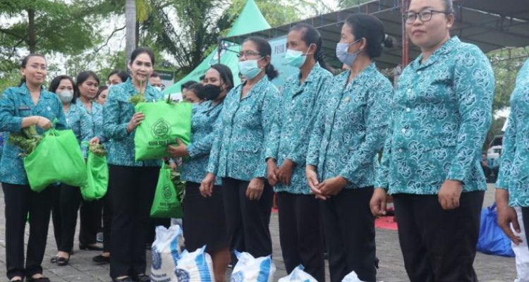 Tim Penggerak PKK Jembrana Gotong Royong Belanja dan Berbagi di Pasar Rakyat