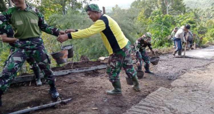 Peduli Kesulitan Rakyat, Kodim 1617/Jembrana Kerahkan Anggotanya Bantu Pengecoran Rabat Beton Jalan