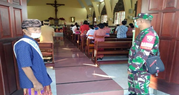Peduli Pada Jamaat Gereja Hati Kudus Yesus Melaya, Babinsa 1617-03 Melaya Himbau Prokes Selama Ibadah