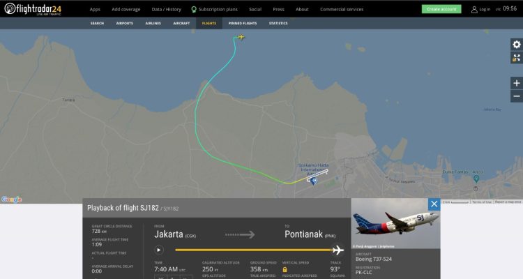 Pesawat Sriwijaya Air Hilang Kontak di Pulau Lancang Kepulauan Seribu