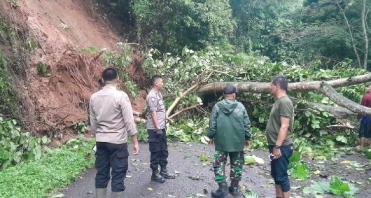 Respon Cepat Polisi Di Purwakarta Lakukan Penanganan Longsor Yang Menutupi Jalan