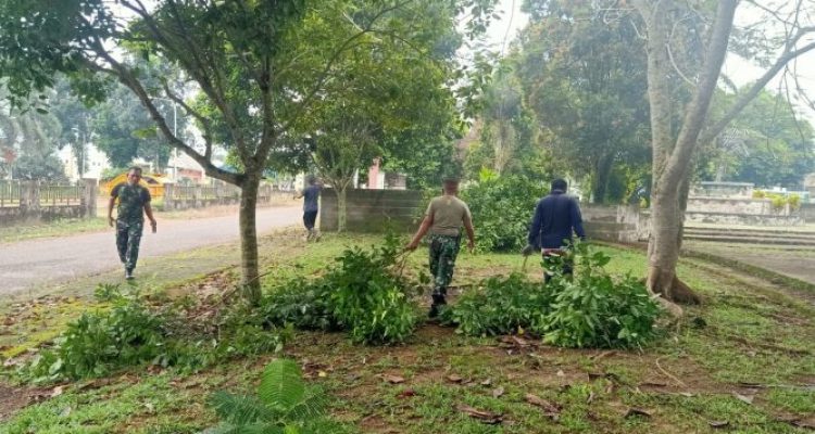 Sambut HUT Korpri Ke 50,Koramil 414-05/Kelapa Kampit Kerja Bakti Bersama Pemerintah Kecamatan