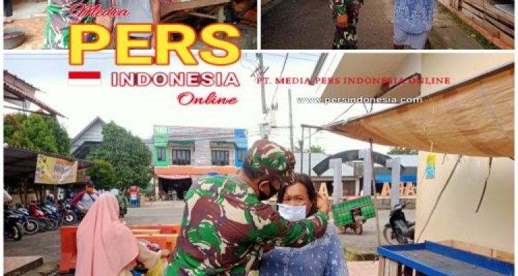 Sembari Beri Himbauan, Anggota Koramil 414-05/Kelapa Kampit Bagikan Masker