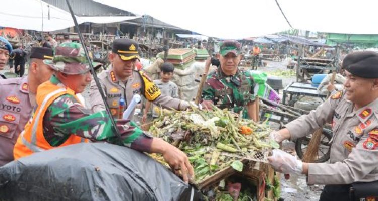 Seragam Tak Jadi Penghalang, Dandim 0506/Tgr dan Kapolres Bersihkan Pasar Babakan