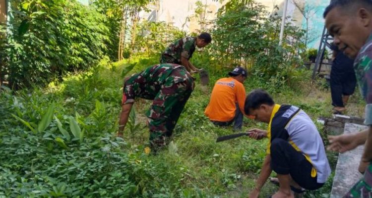 TNI Bersihkan Rumput Dan Dahan Pohon
