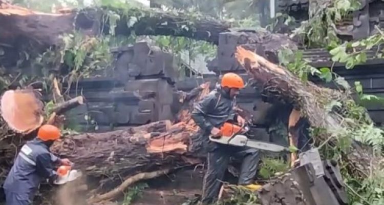 Evakuasi Pohon Tumbang di Pura Dadia Telaga Kubu Berlanjut, Estimasi Kerugian Capai 550 Juta