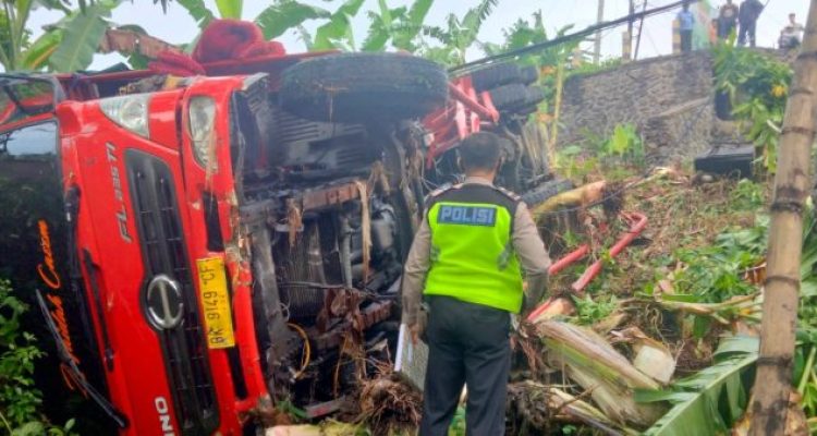 Truk Tronton Terperosok ke Perkebunan Warga di Yeh Sumbul